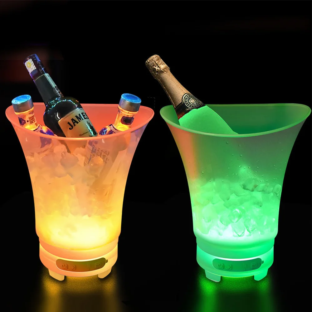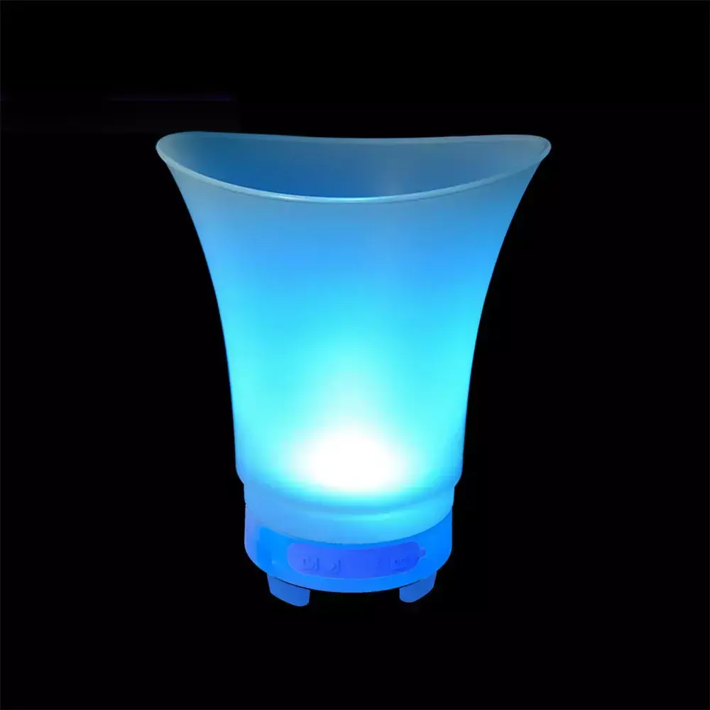 Função 3 em 1 Inovadora: Combina um Balde de Gelo de 5L, uma Caixa de Som de Alta Qualidade e uma Iluminação LED ambiente.