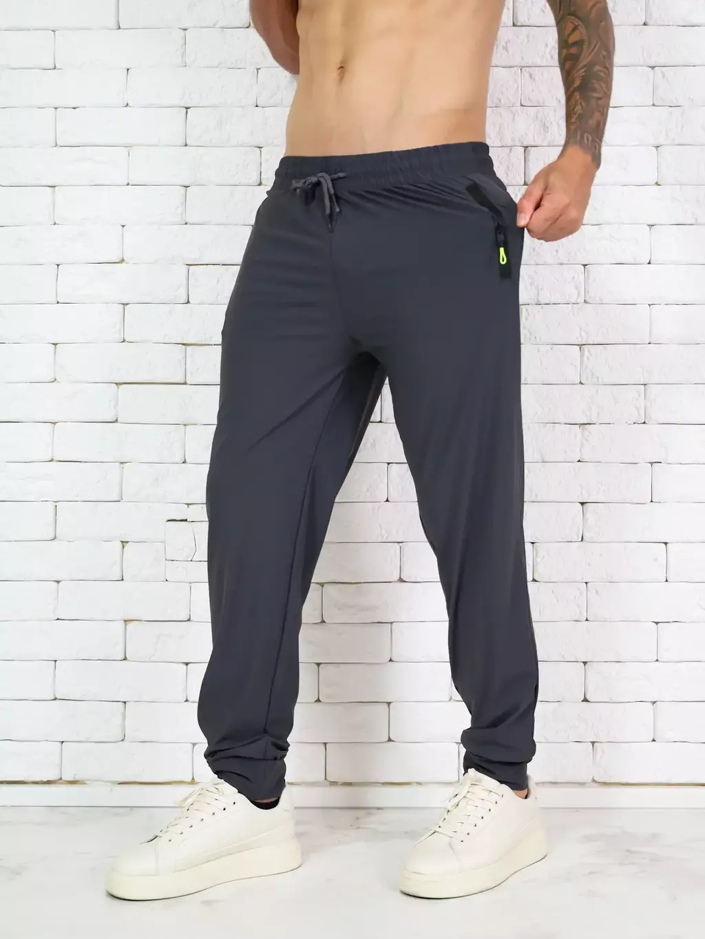Running Homens Cintura Com Cordão Bolso Com Zíper Calças Esportivas Tecido importado de secagem rápida tecido de alta elasticidade