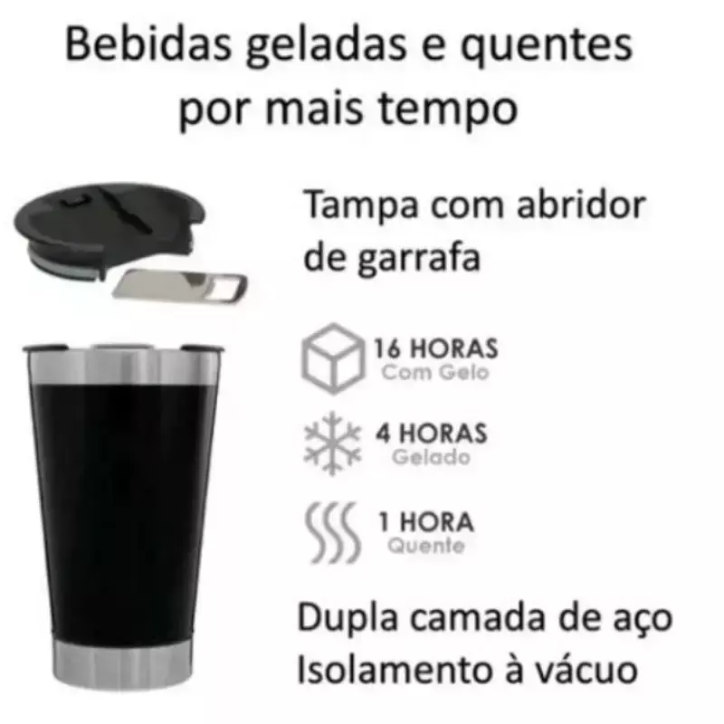 Capacidade Ideal: O tamanho é perfeito para cervejas, drinks, café ou água, tornando-o um acessório versátil.