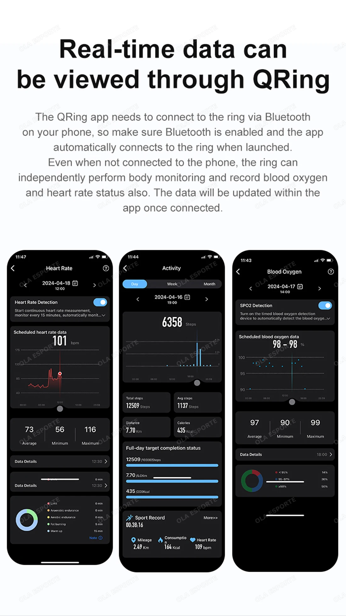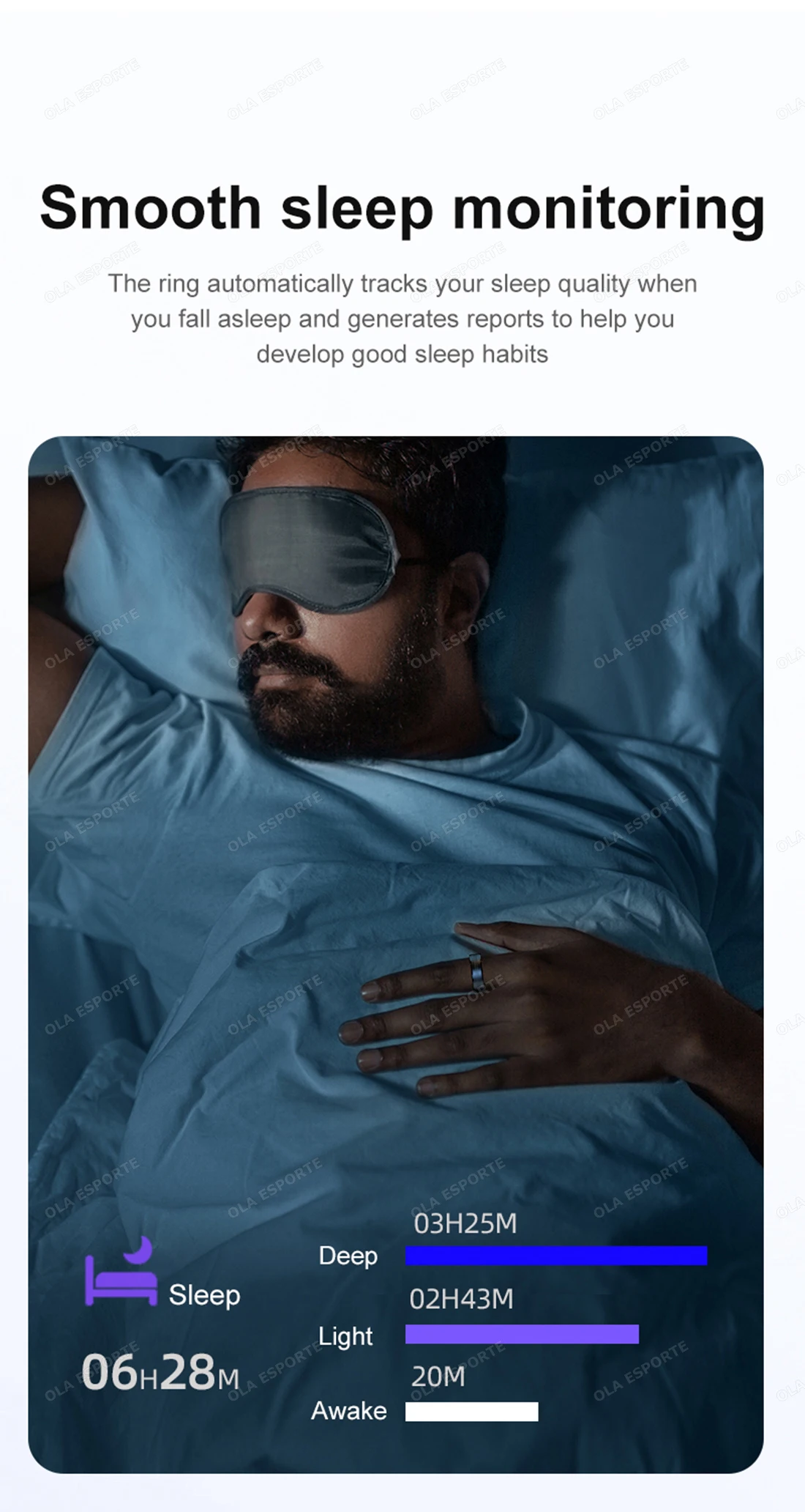 Monitoramento de Saúde Contínuo: O anel inteligente utiliza sensores avançados para rastrear métricas como frequência cardíaca, qualidade do sono e atividade com alta precisão.