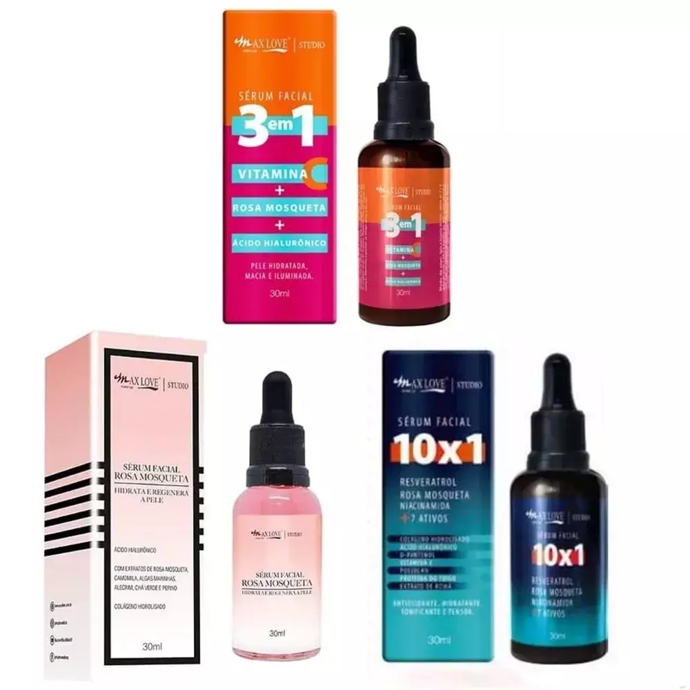 Kit c/ 3 Sérum Max Love 3 em 1 + Rosa Mosqueta + 10 em 1