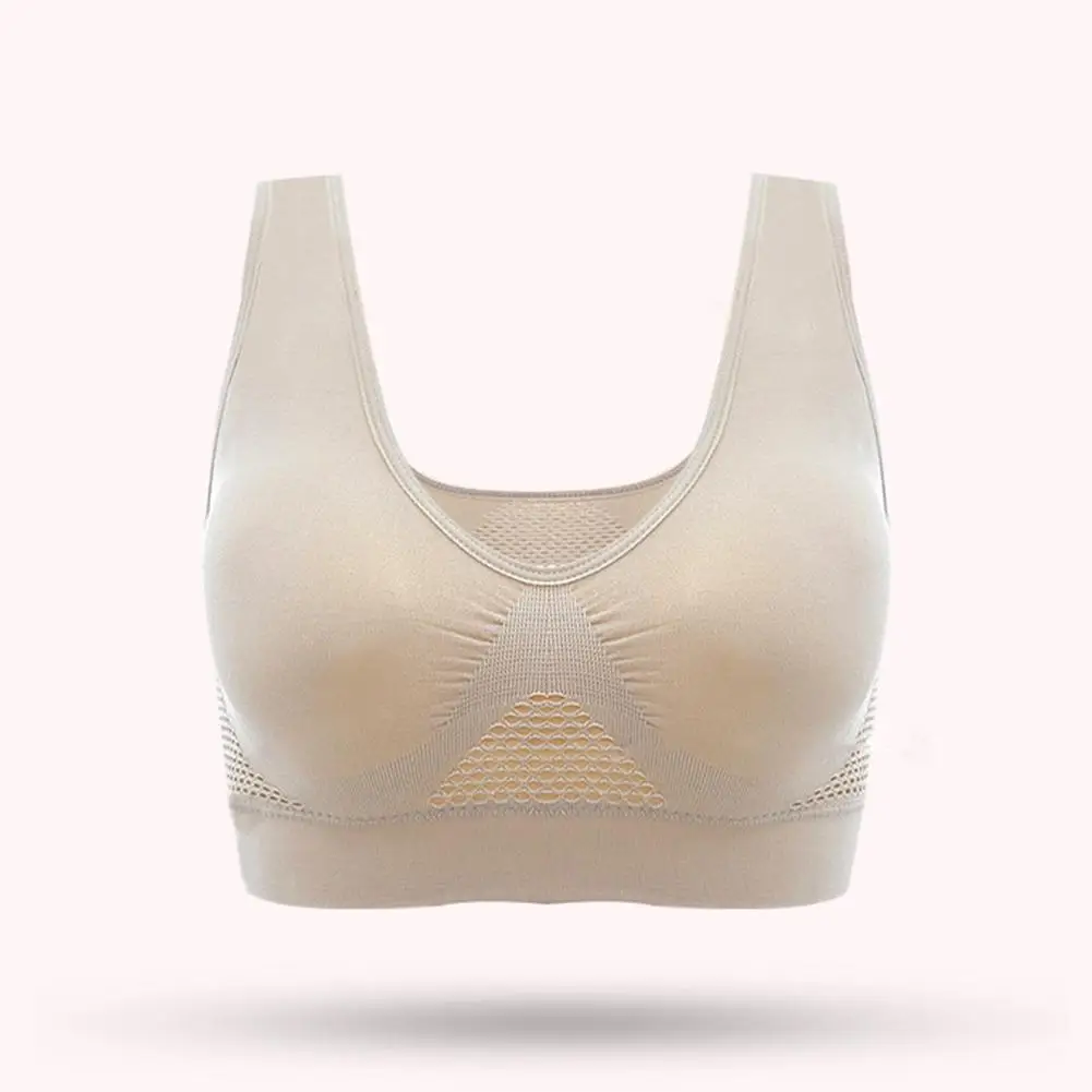 Nylon Elástico: Nylon Elástico: Confeccionado em tecido de náilon de alta qualidade, este sutiã colete não só possui elasticidade, mas também uma textura macia que garante conforto e flexibilidade ao longo do dia.Ele foi projetado para proporcionar um ajuste perfeito, movendo-se com o corpo, mantendo a sua forma e suporte.