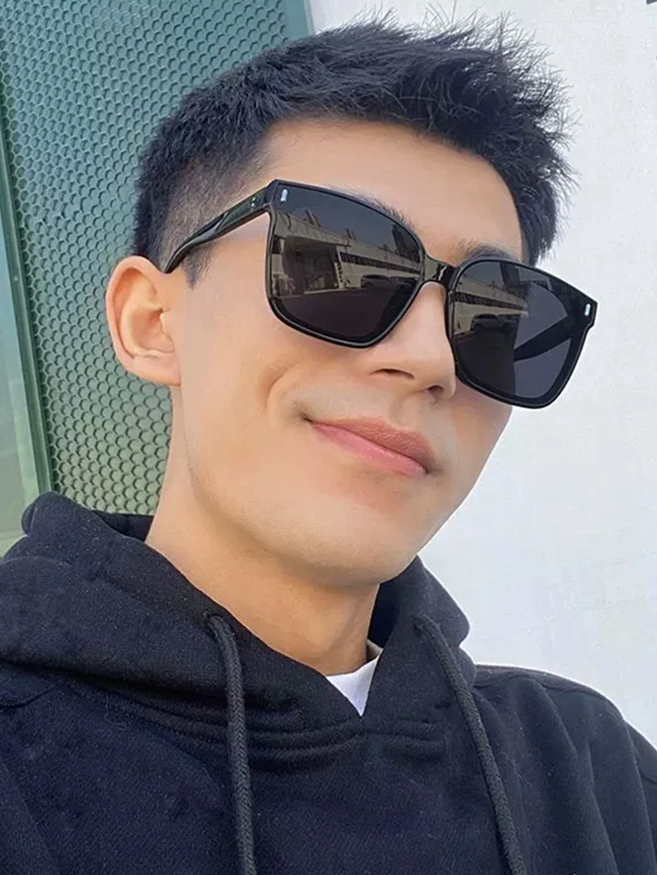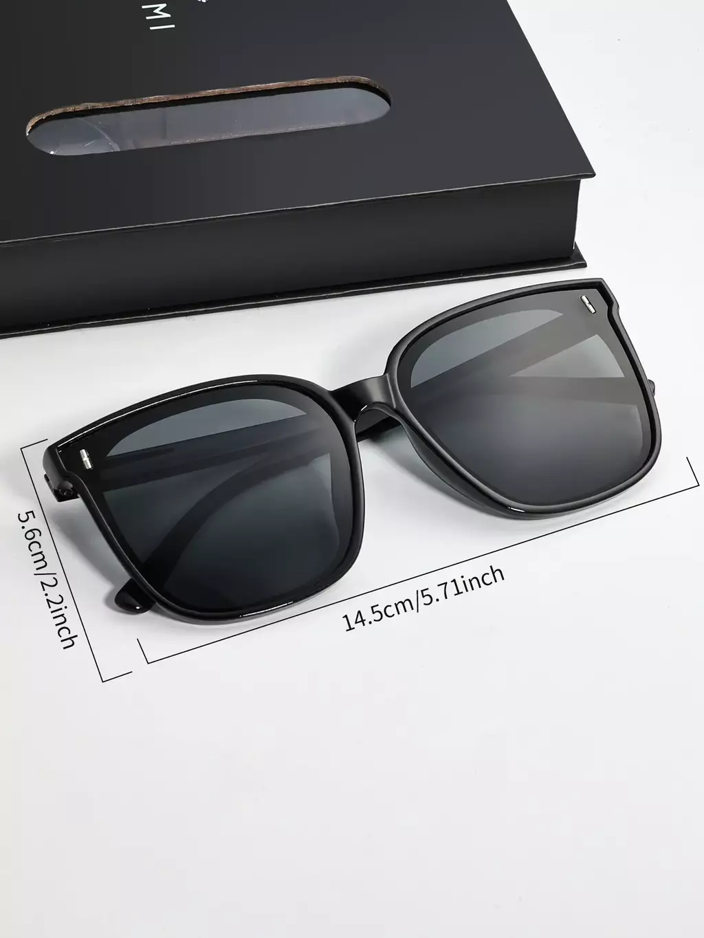 Óculos de Sol Coordenados: Os óculos de sol de estilo aviador/quadrado moderno oferecem proteção e completam o visual com um toque de mistério e elegância.