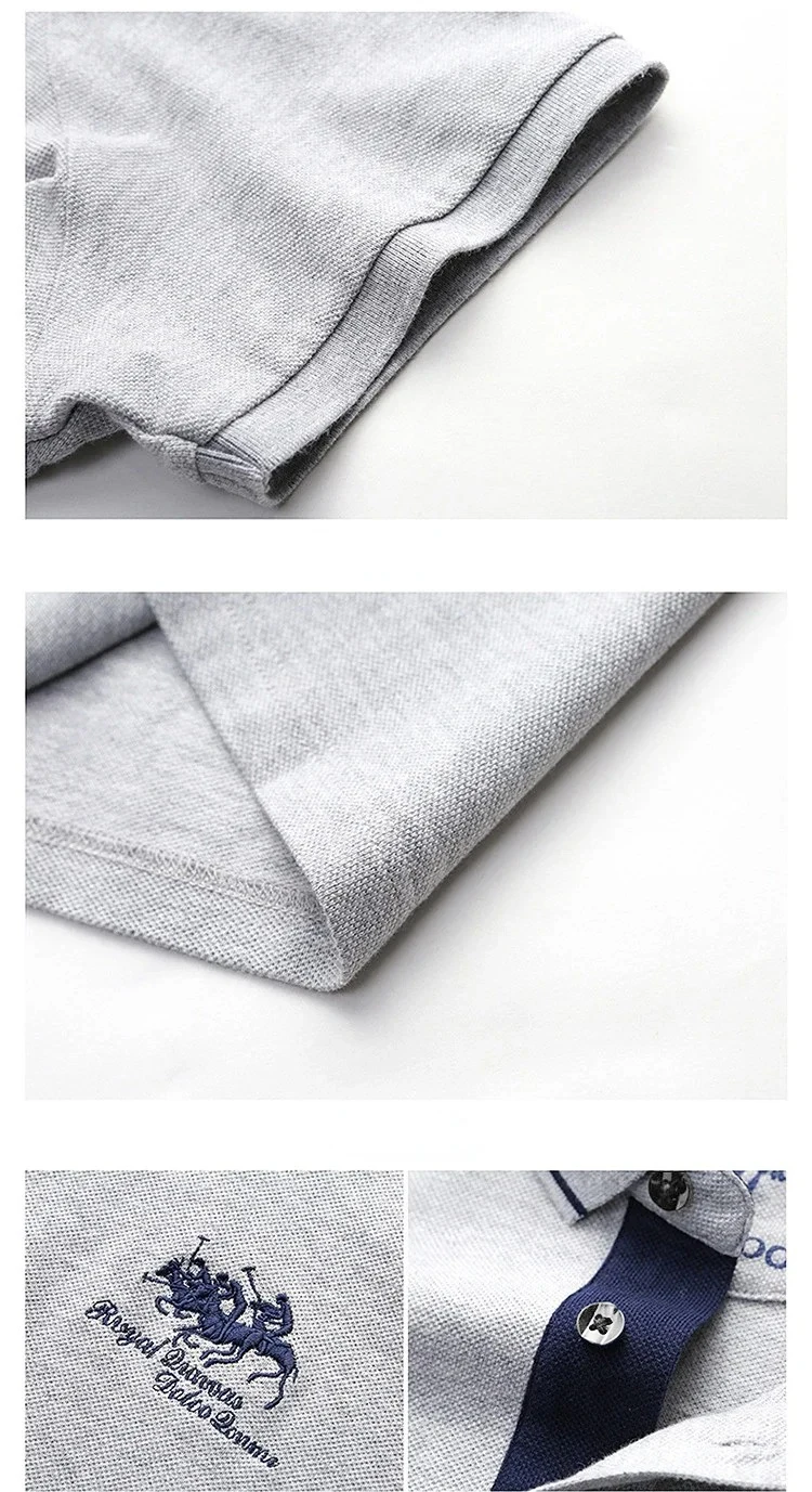 Bordado Royal em Destaque: O emblema detalhado e imponente é o ponto focal da polo, conferindo um visual de grife exclusiva e tradição.