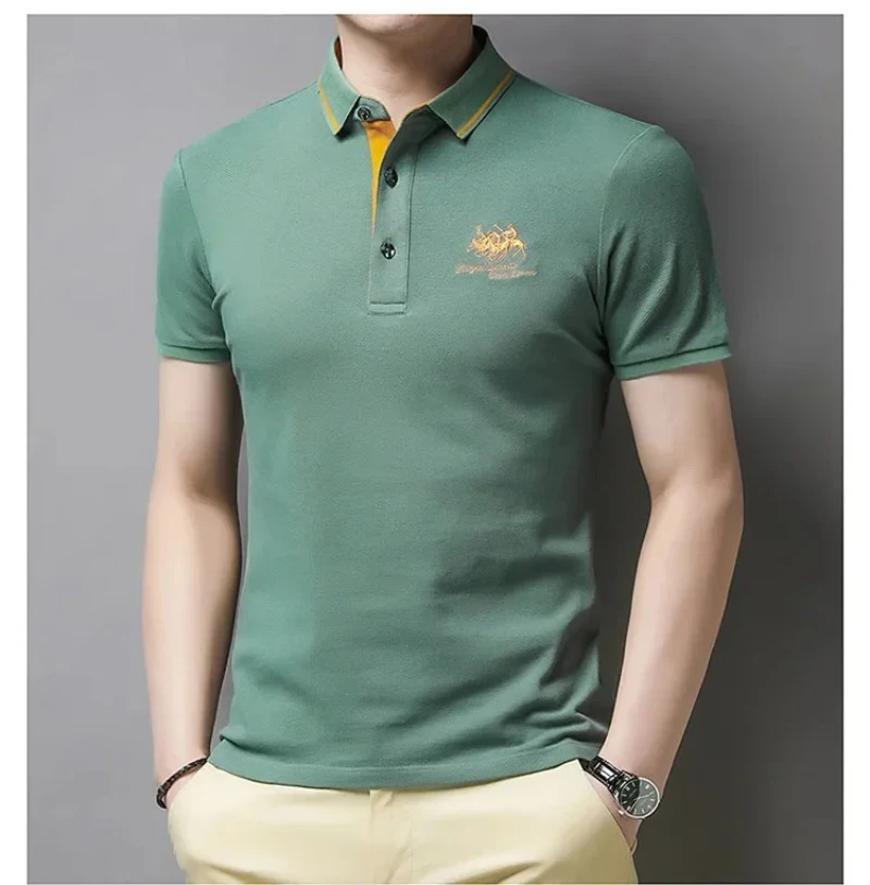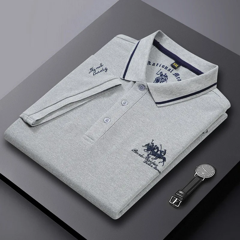 A Polo Royal Emblem da ZOLTAN é a sua passagem para um nível superior de elegância casual. Este clássico é elevado pela qualidade inconfundível e pelo bordado central luxuoso (cavaleiro em cavalo), que remete aos símbolos de tradição e nobreza.