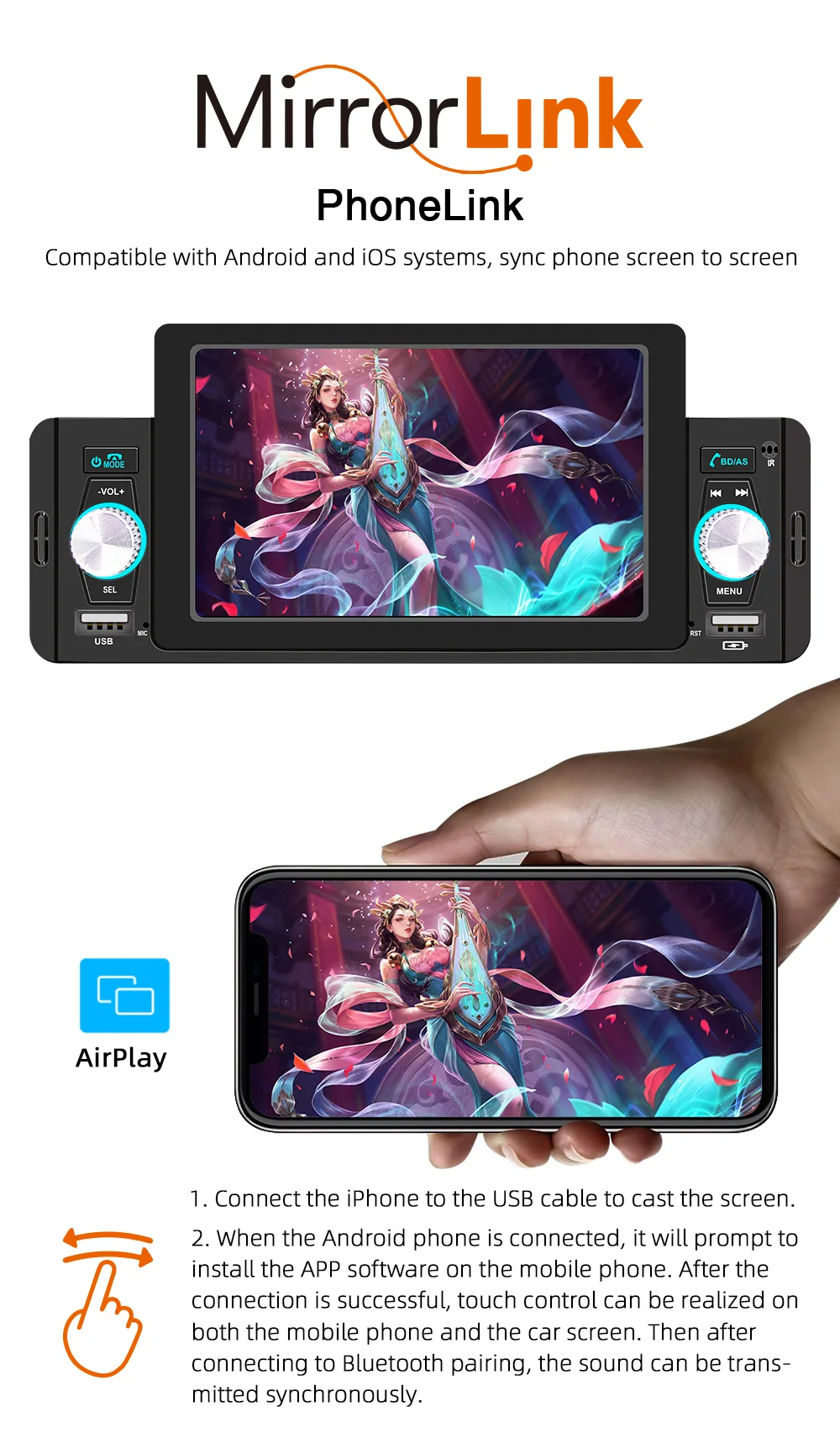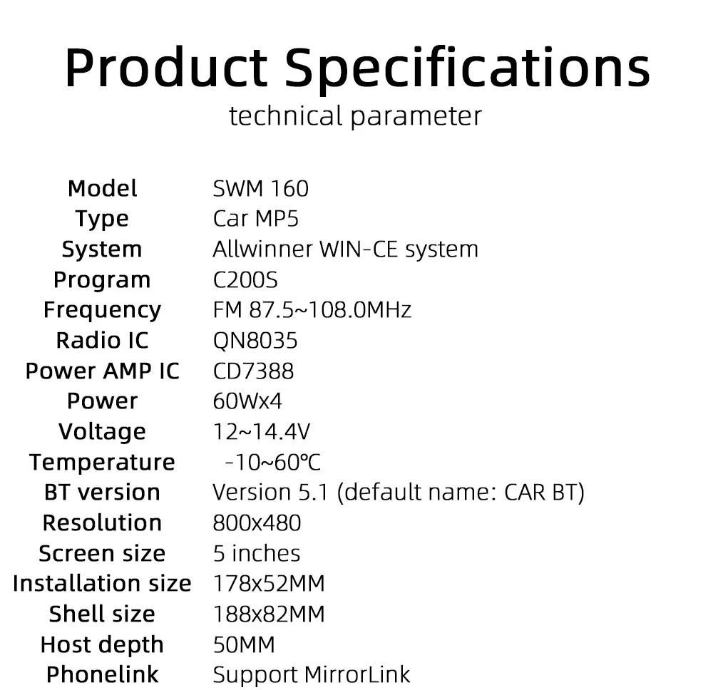Audio format:MP3/WMA/WAV/APE/FLAC