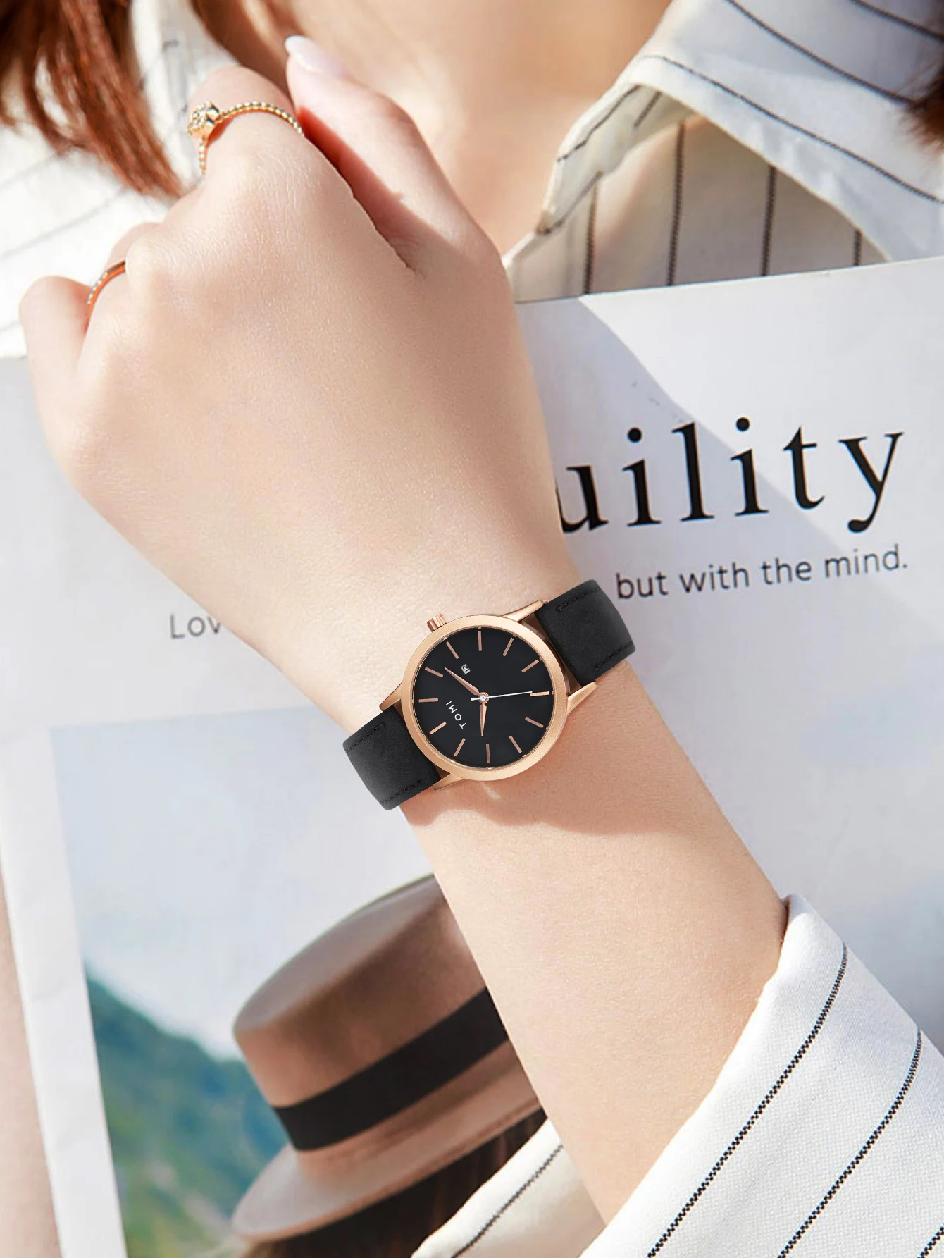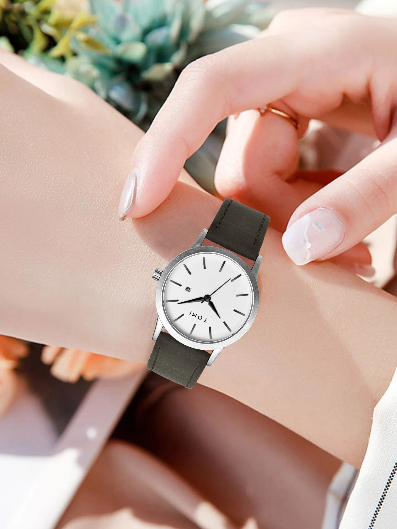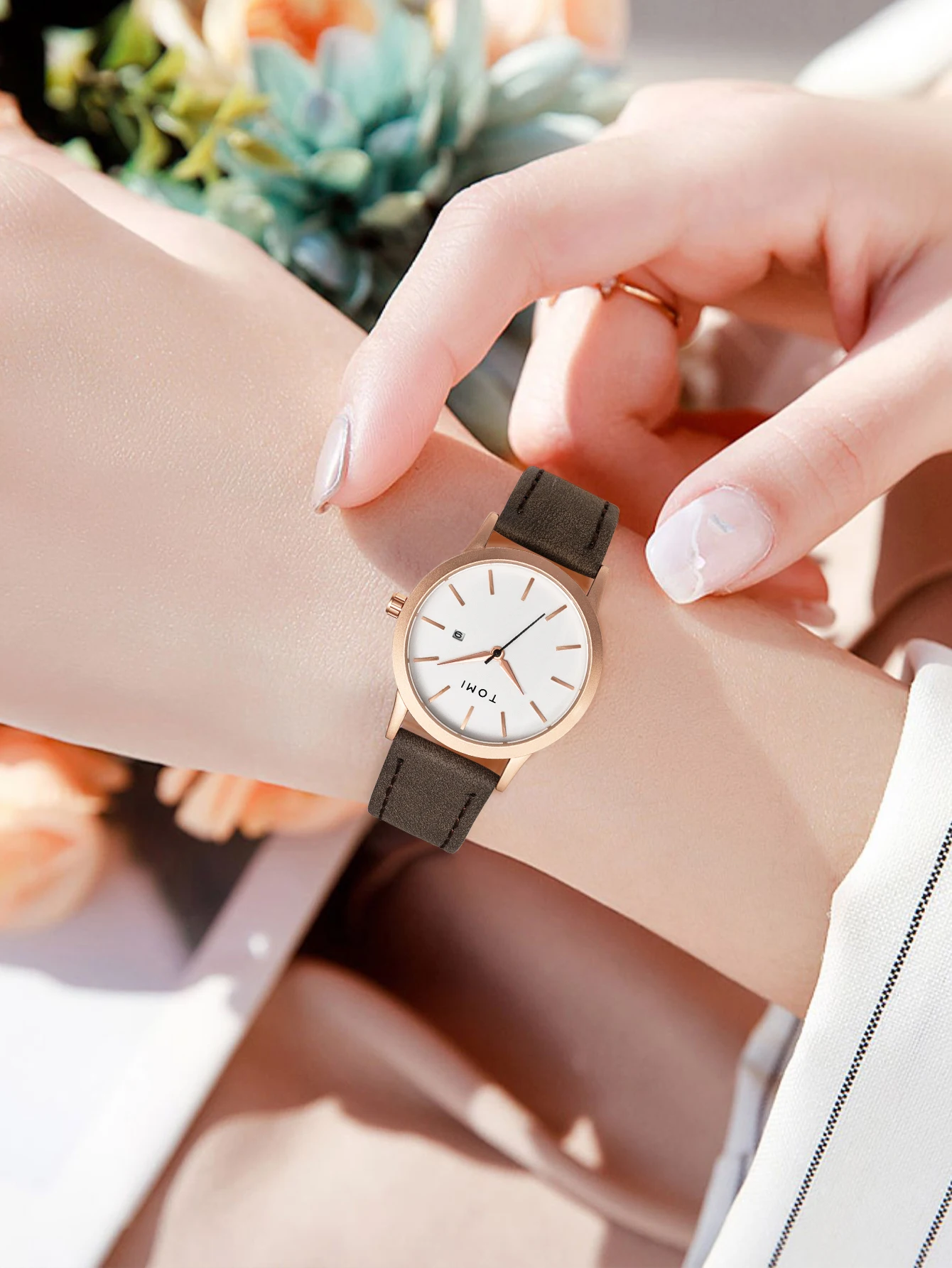 Caixa Fina e Polida: O perfil fino e o acabamento metálico da caixa garantem que o relógio se ajuste elegantemente ao pulso.