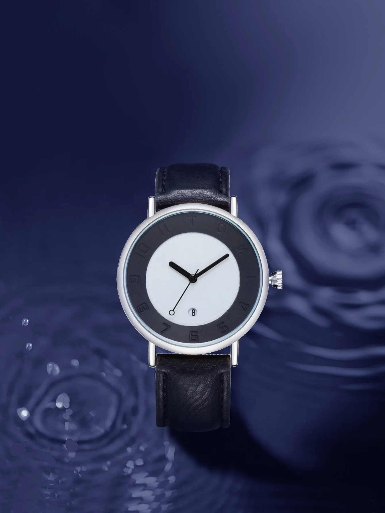 Ponteiros e Marcadores Finos: Marcadores de horas e ponteiros claros garantem a fácil leitura e um acabamento elegante e minimalista.
